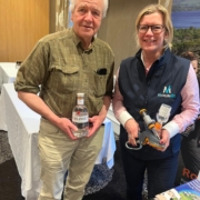 Other sessions also included the eradication of sheep scab, and Glasgow Vet School gave a demonstration of their calving simulator used for vet students and farmers. Hector Low from Stornoway Vets, pictured below with Jane, won the prize raffle competition on the stand, taking home a bottle of MerlinVet-branded Caorunn Gin.